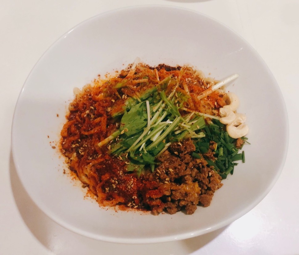 お好みで辛さも痺れも1〜5の間で選べる汁無し坦々麺風麺料理。