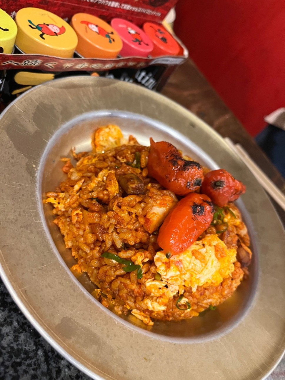 チャーハンは辛ウマで案外勢いでいけますが上のジョロキア3本が鬼門です。確実に体がおかしくなります。体内でどのあたりを通過しているかわかります。何かのバチが当たったのかという辛さです。1人チャレンジではなく、みんなでシェアするなら普通に注文することができます。