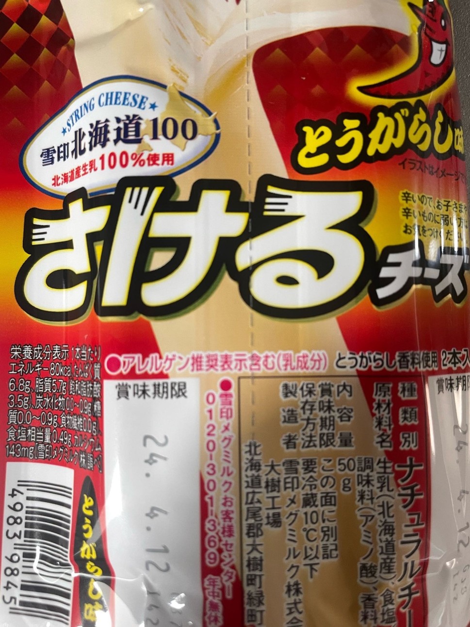 さけるチーズシリーズは、ガーリックやバターのフレーバーも面白く、プレーンも美味しい😋 もし全国どこでも購入できるなら、とうがらし味にKMの基準値を設定するのもいいんじゃないかと思います。