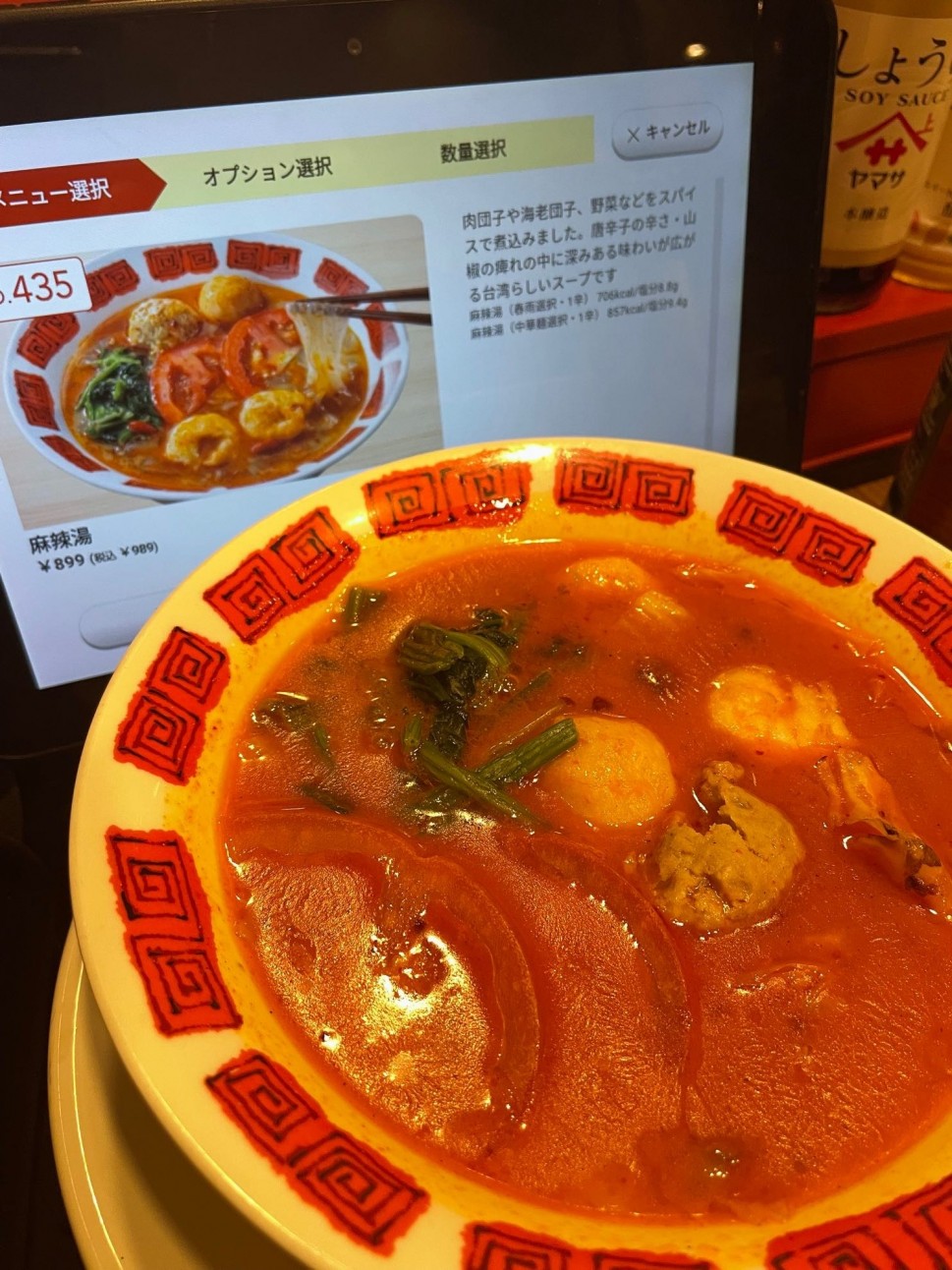 麻辣湯の3辛をチョイス。バーミヤンでは辛いほうの食べ物だと思います。