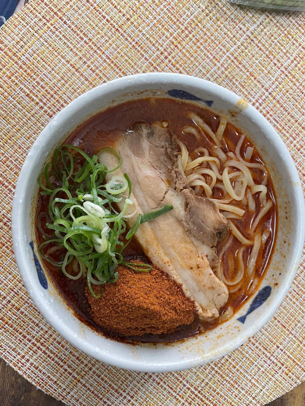 冷凍麺ですが、麺とスープを温めて作ります。スープの香りが良く、コクがありました。辛いスパイスは別袋に入っており、自分の好みで量を調整できます。全て入れました。麺半分くらいを食べ切る時には口がヒリヒリしてきます。個人的には美味しく食べれる辛さと思います。