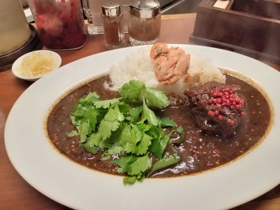 辛すぎず、麻辣とピンクペッパーの刺激がクセになる。味変としてパクチーや胡麻、ガーリックアーモンドオイルが良いアクセントになっていて食べ飽きしない。ライスの量が少し多いので注文時気持ち少なめにしてもらうといいかも