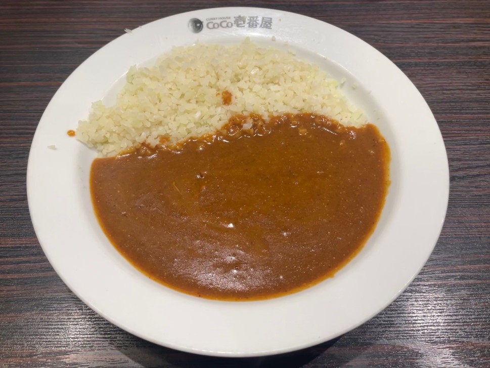 舌がピリピリするような辛さでしたがルーの中に入っていたお肉の旨みも感じられるカレーでした。🌶️福神漬けと一緒に食べると少しマイルドになり美味しかったです。私は低糖質カレーのカリフラワーライスのサクサクしてる食感が好みです。ルーの辛さもちょうど良い辛さでした。