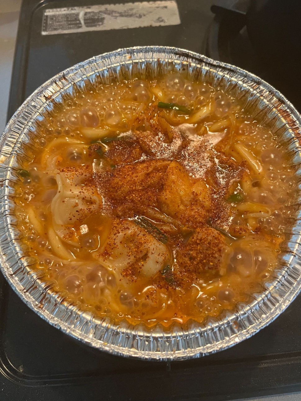 うどんのコシもあり、とても食べ応えありました。辛味がもっと欲しくて唐辛子パウダートッピングして食べたら、お尻痛いです。