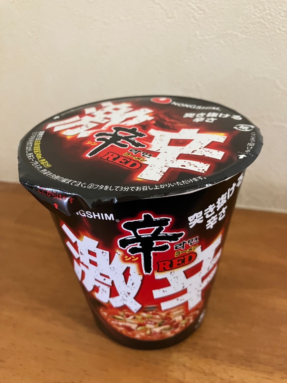 "突き抜ける辛さ""激辛"のキャッチに期待しましたが、唇が少しヒリヒリする程度の中辛カップ麺でした。ノーマル同様に軽い味のスープで、野菜も多めに入っていて食べやすいです。