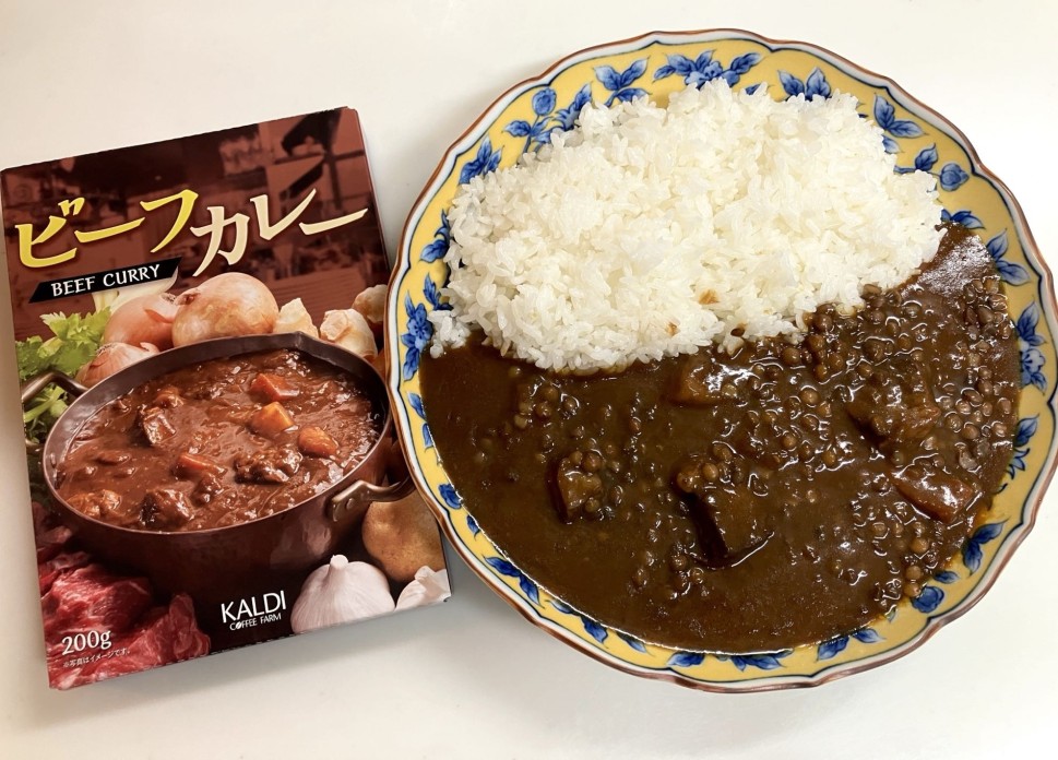 牛肉とにんじん、ジャガイモを煮込んだ欧風カレーです。炒めタマネギやチャツネ、トマトペーストの甘味酸味と隠し味のコーヒーから来るコクが美味しかったです。辛さはピリ辛。