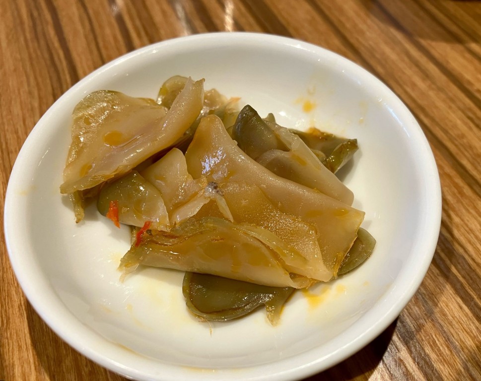 重慶飯店レストランでの提供はもちろん、売店や通販でも買えるザーサイです。ラー油の油っぽさはなく、塩味・甘味・旨みのバランスが良く、適度な歯応えも美味しさに繋がっています。
