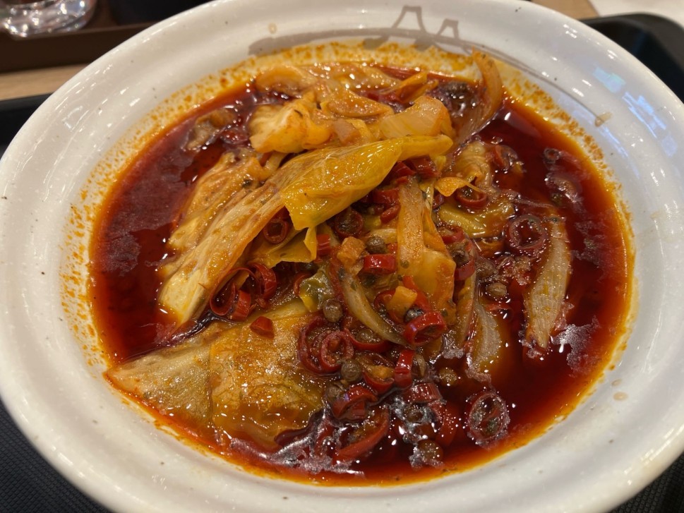 定食で1400kcalを超える熱量が示す通り、かなりオイリーなスープで唐辛子・花椒・辣油の辛みと痺れがじわりじわりと攻めてきます。大手チェーン店では珍しいレベルの辛さだと思いました。辛さに不慣れな人だと具を食べ切るのも難しいかもしれません。
