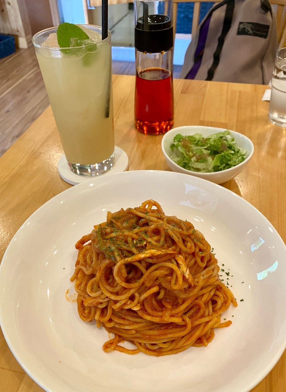 ナポリタンにはタバスコ、という方も多いと思いますが、ここの自家製辛味オイルは料理の味に大きな変化をもたらす逸品でした。尖りのない円やかな辛みなのですが、上質の🫒オリーブ油に溶け込んだ🌶️唐辛子の配分が絶妙で...😋