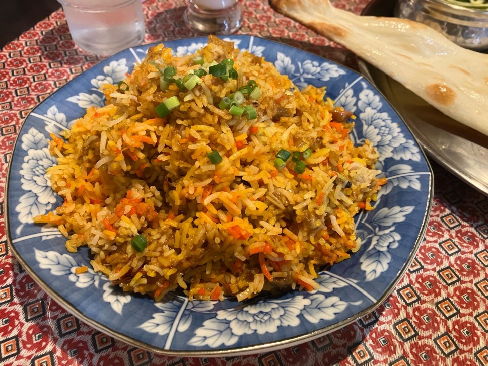 インディカ米100%ながら、しっとりと炊き上げたご飯が羊肉を始めとする具材の旨みを吸っていて、美味しく頂きました。