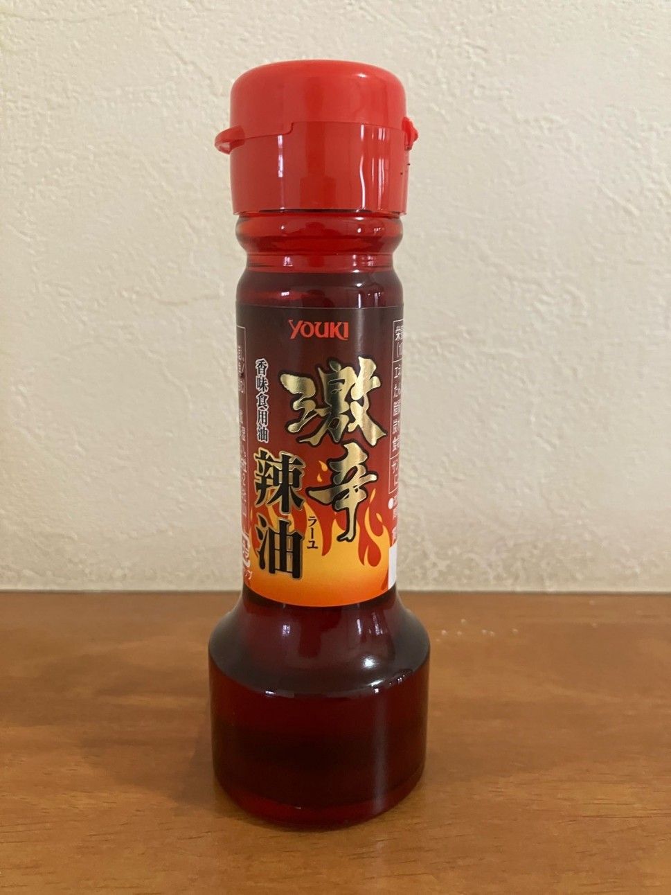 唐辛子をはじめとする香辛料や香味野菜を大豆油で煮出し、同社のノーマル辣油の1.5倍の辛さに仕上げた香ばしいラー油です。ゴマ油を使った辣油とは違った風味が独特でした。