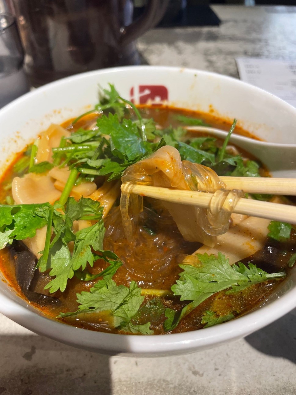 バイキング形式で好きな具材を選び、辛さとトッピングも選び、レジへ。まさかの1936円のお高めの春雨ヌードルとなりました。ひよって8辛にしましたが、ちょうど良いシビ辛!リピートしよう!ちなみに選んだ具材はモロヘイヤ、メンマ、エノキ、シメジ、キクラゲ、そしてパクチー大盛り。満足!
