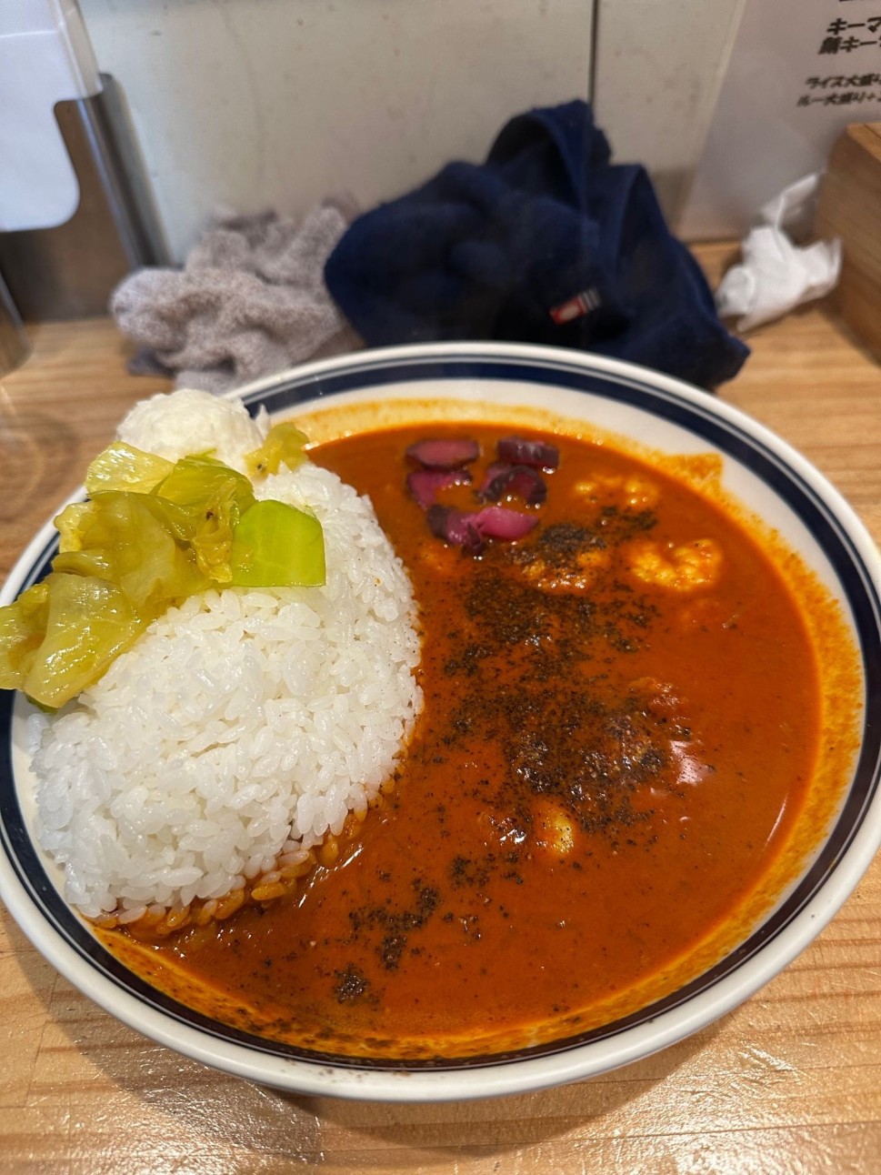 エビ入りのカレーを無料で一番辛い辛辛(つらから)で