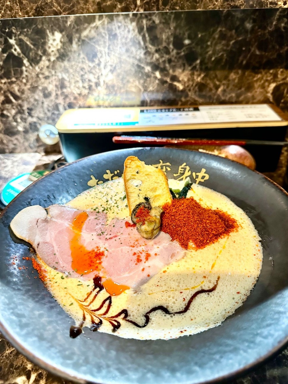 赤牡蠣ラーメン3辛+セット牡蠣ご飯