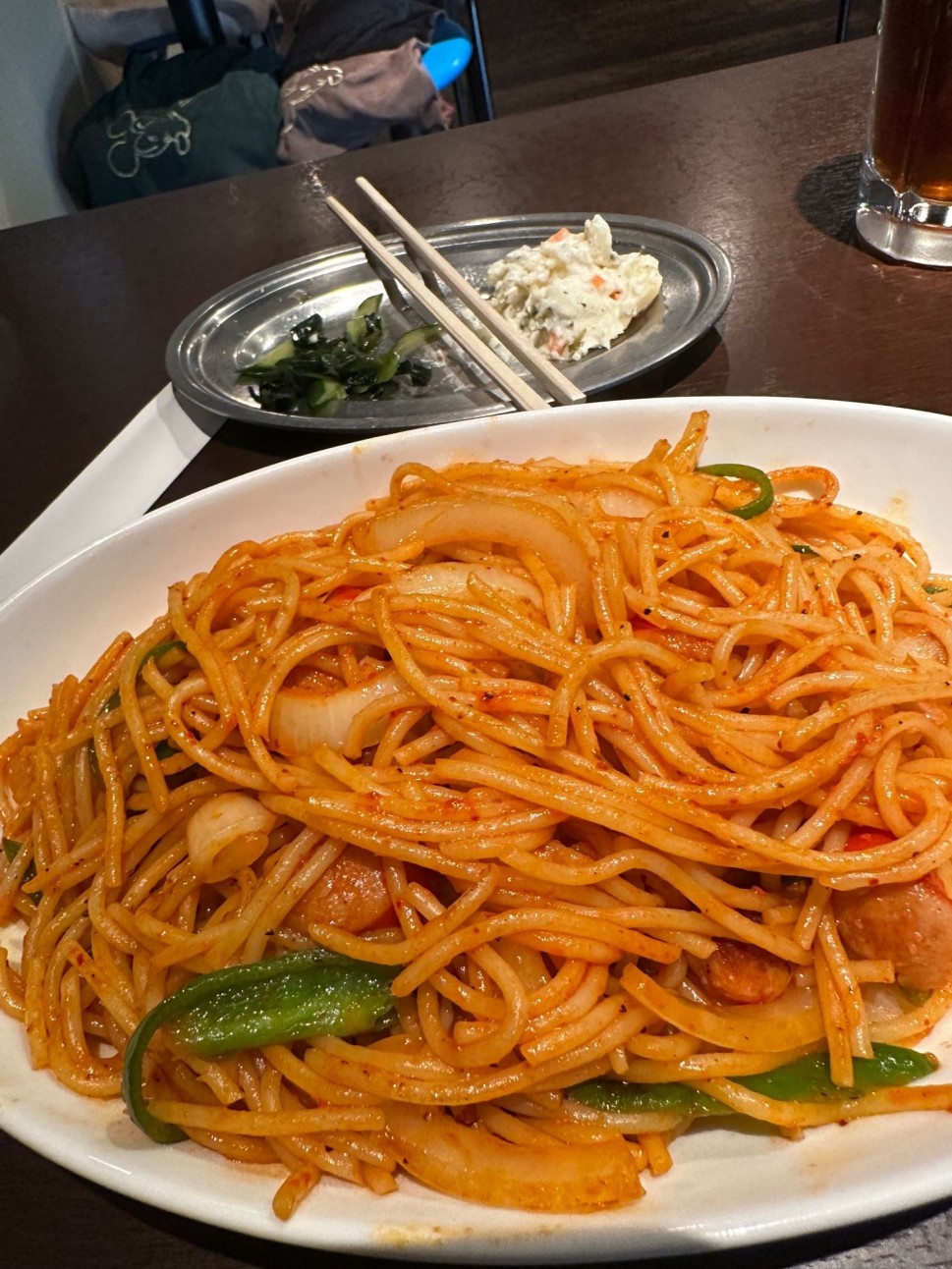 メニューも不思議な名前のが多く、今回オーダーしたのはナポリタンを辛くしたと言う「ドM」ナポリタン