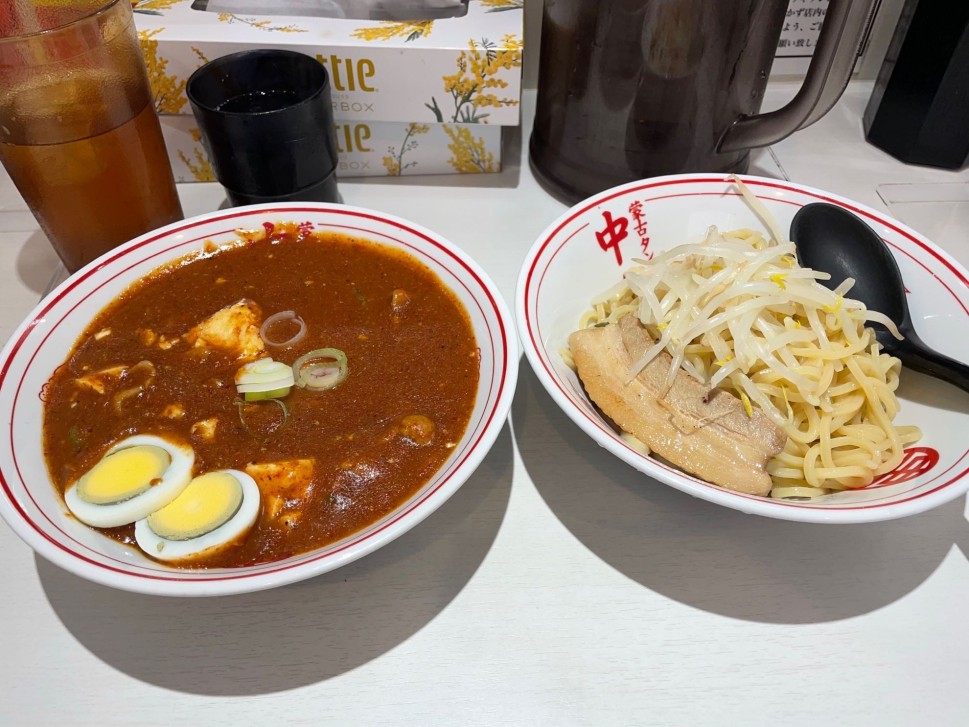 麻婆のようなドロドロの汁につけてタイプのつけ麺です。