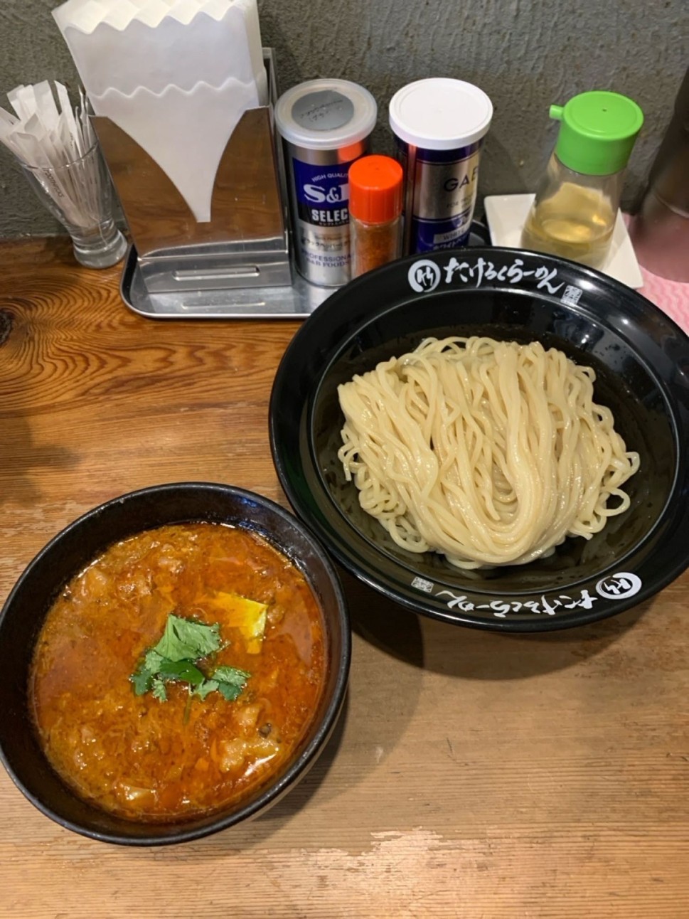 ネーミングからして何やら凄そうなお店の定番メニュー「爆烈牛すじつけ麺」その辛口バージョン「3辛¥1050」を頂きました。