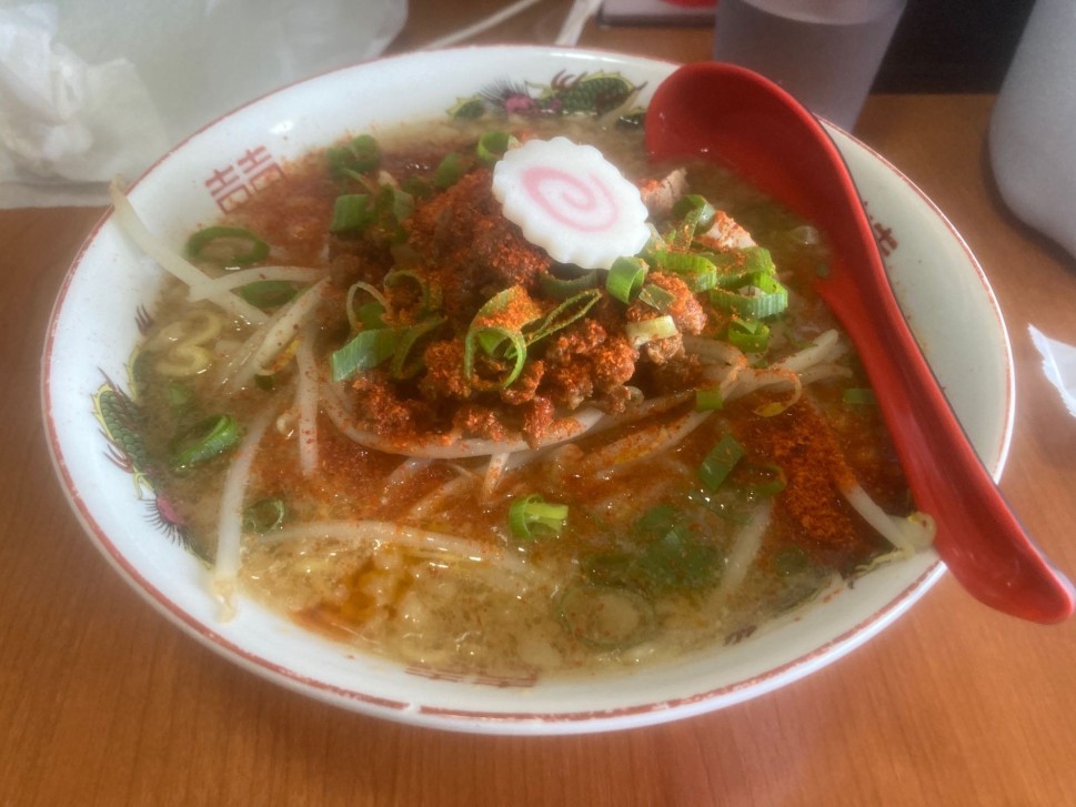 見た目は辛そうでしたが、食べてみるとそれほどでもなく。普通に美味しいラーメンでした。