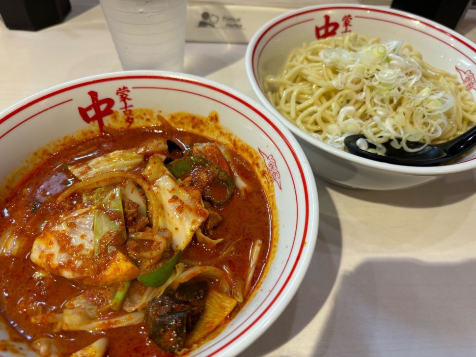 今年の暑い日も残りわずかだろうし、冷しメニューで一番好きな冷し味噌やさい麺固め辛さ5倍で!