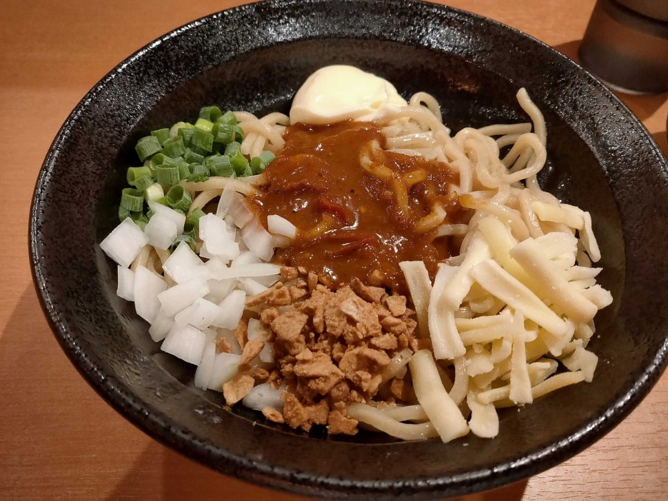 卓上調味料で自分好みの味に仕上げるスタイルです。調味料のバリエーションはラー油、酢、胡椒、大蒜、マヨネーズ等でオーソドックスですね。ベースに何かインパクトがあれば良いのですが、これといった特徴も無く極々普通の油そばでした。