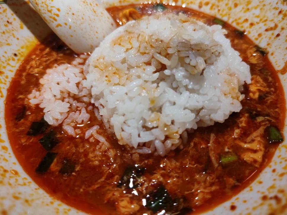 麺完食後、ご飯を投入したお姿でございます。鬼辛雑炊。美味しゅうございました。