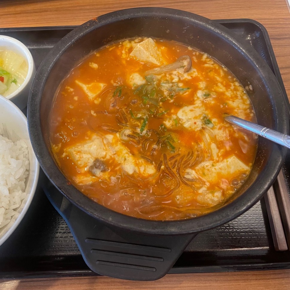卓上にあった唐辛子をブンブン振りかけまくってちょうどいい辛さにしました🌶️🌶️
