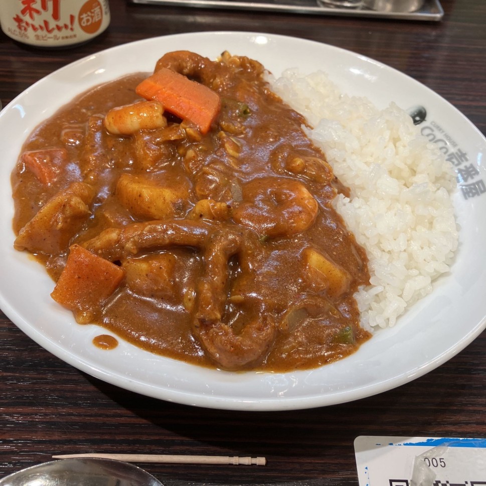 ライス量は昔はなかった150gにしてトッピングに野菜を足しました。予想していたけど、具とライスに比べてルーが少なく、ルーだけをスプーンですくえないくらい。正直、ルーと具だけ食べたかったので、量は適かな。