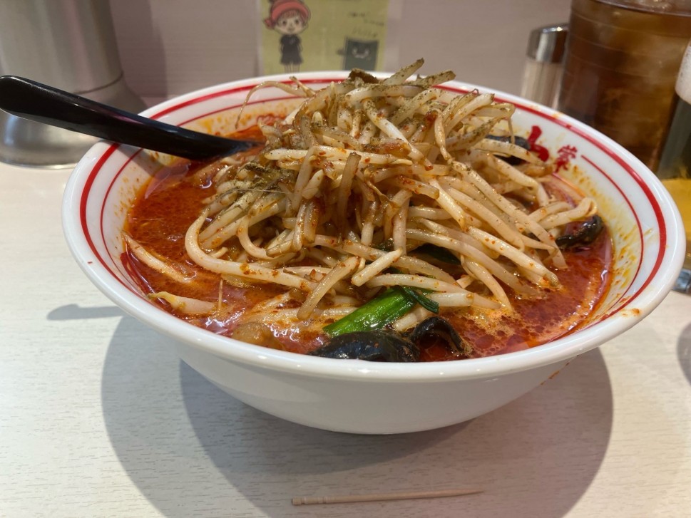 北極の炎¥1,140を麺少なめで頂きました。北極は普通でも麺1.5玉で多いので、少なめで丁度いいくらい。もやし山の上の唐辛子🌶️と胡椒、特に胡椒が意外に攻撃力大、北極よりちょい強い感じは慣れの差かな。ごちそうさまでした【2025年1月】