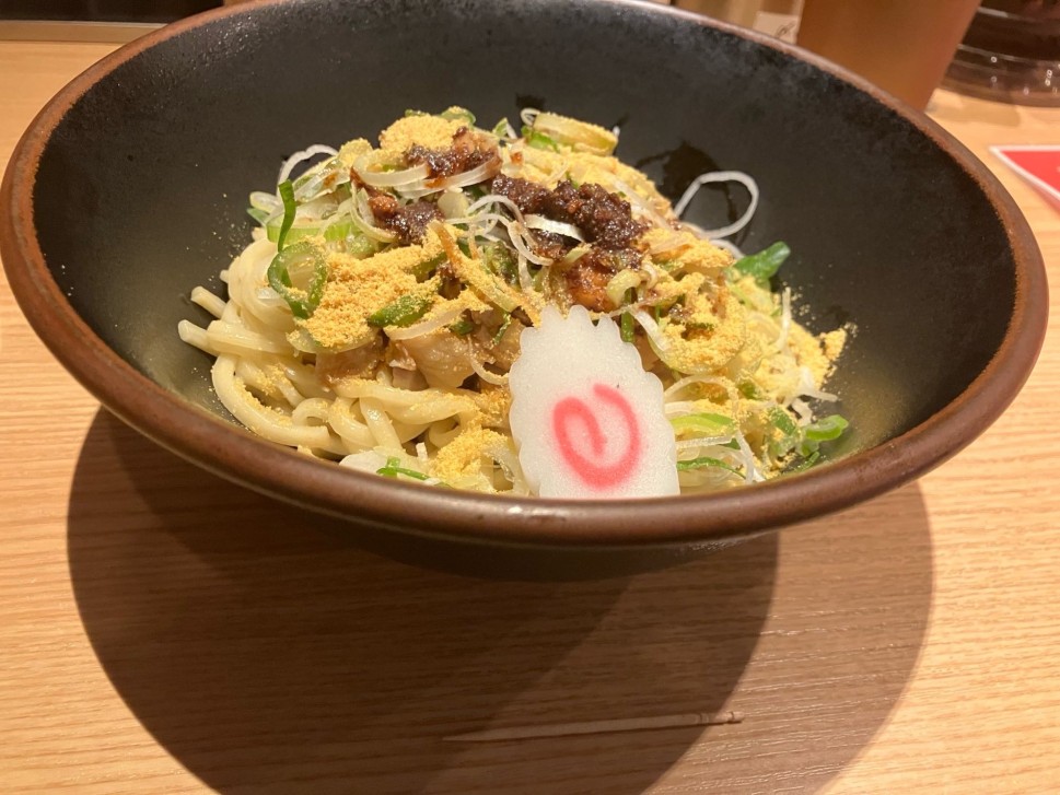 振りかけられた黄金唐辛子🌶️が美味しそう😋たっぷりで¥1,500にも納得感。スープが全く無く、黄金と具と麺をまぜまぜして頂きました😄 麺が安全地帯になったかな?でも唇に残るヒリヒリ感が良き😌 今回は並盛りにしましたが大盛りも同価格【2025年4月】