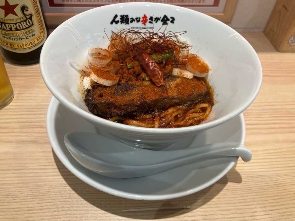 30はスープの少ないまぜそば仕様なので、50よりは優しかろうと思っていたら、唐辛子の赤い粉も凄いかかってる。ネギまでしっかり辛い。強刺激。久しぶりに耐久戦の様相に😨 お肉も辛いけど厚さがある分、若干の安全地帯に。ネギを片付けて、麺を少しずつ食べ進め、お肉に退避しながら食べ進め、最後は水に頼りつつ、なんとか完食。私には辛過ぎました🥵 そして案の定、胃痛腹痛との戦いに夜まで苦しむのでした。¥1,000+レベルEND¥200=¥1,200【2025年11月】