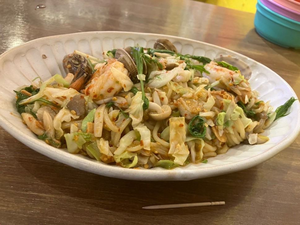 先月に中級を頂いた辛い海鮮焼きそばの超上級¥1,280。いか、あさり、えびが主役の焼きそば風の麺料理。殻付きの貝が良き。香草はかすかにパクチーが漂う程度で、苦手な私でも普通に食べることができました。赤いものがふりかかり辛い。すするとむせる辛さは、CoCo壱10辛や北極よりは上に感じます。獄激辛ほどではない、このくらいが私にはギリギリ旨いところかな。これより辛いと耐久戦になりそう。ごちそうさまでした。¥1,280【2025年12月】
