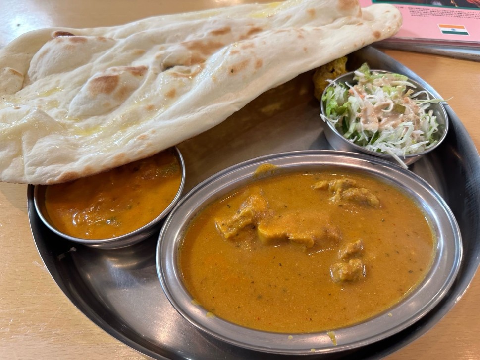 奈良の三条通りにあるインドカレー屋のBランチです。辛さはマイルド・レギュラー・ホット・スーパーホットの4種類から選べます。