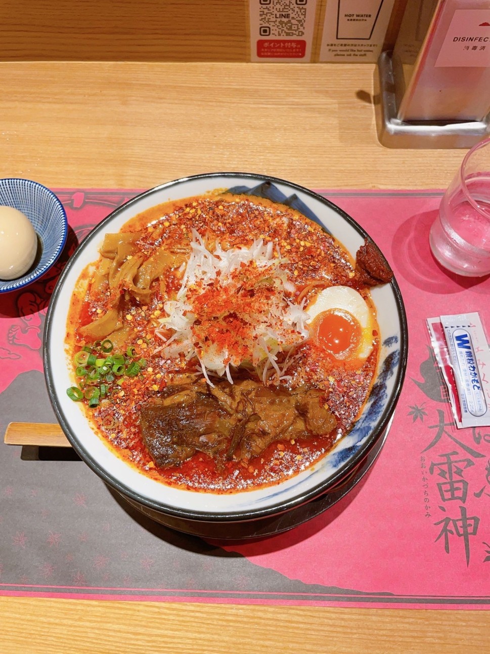 柚子辛紅らーめん28丁目に味付け玉子トッピングで注文