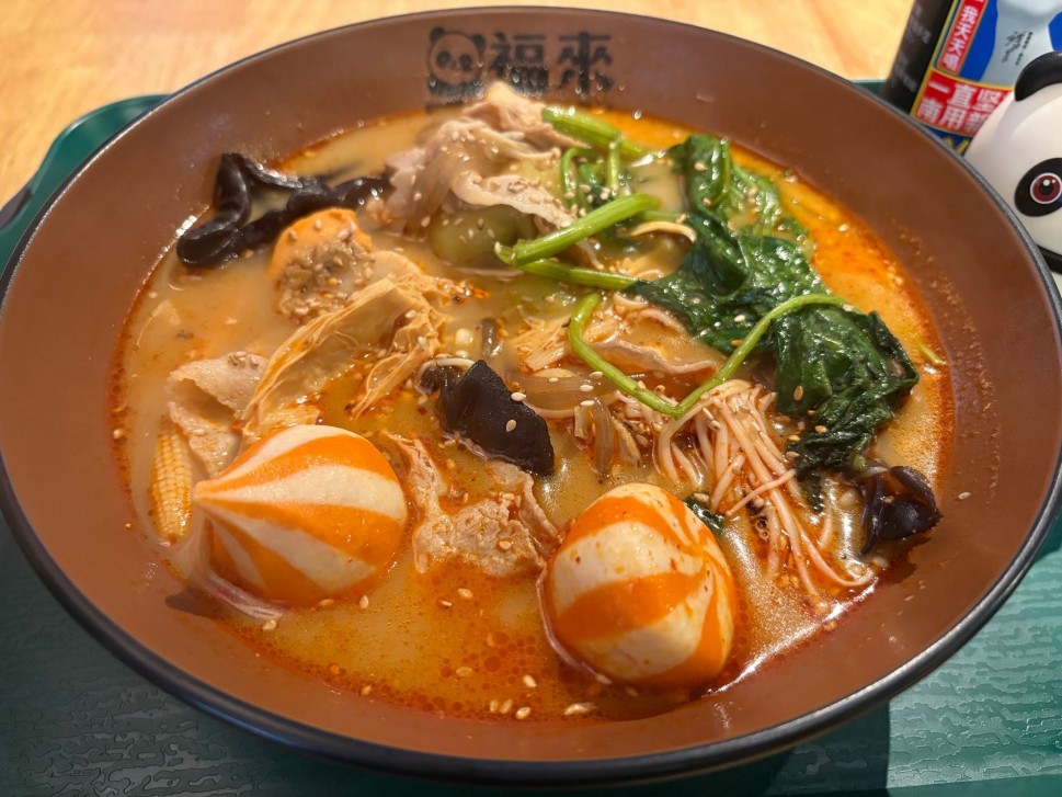 激辛にしようかと思ったらかなり辛いと言われたので大辛に。結果ピリ辛程度でした。花椒や山椒八角のスパイスの辛さで身体があたたまった〜次回は激辛にしたいです。