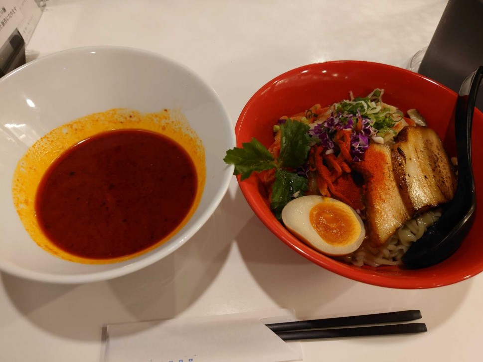 見た目真っ赤なつけダレだが2倍にして1.1KMと辛ジャッジ