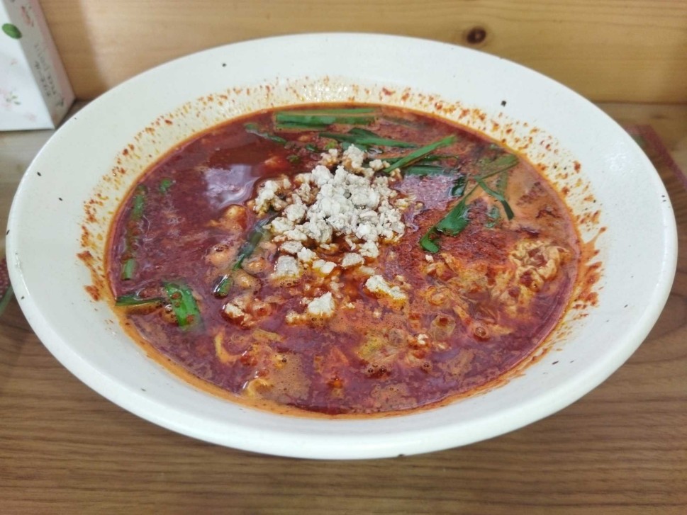 味はとても良かったけど自分的に辛さがもっと欲しく…麺はそば粉多めなのか黒いむっちり食べごたえのある麺でした。人と来たので大蒜は抜きました(ションボリ…
