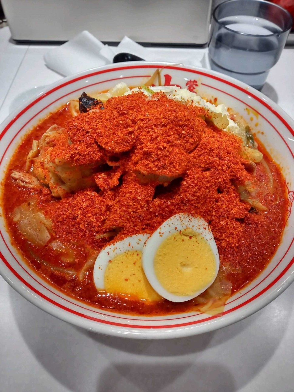 辛さ5倍に好みで一味唐辛子をぶっかけまくる。