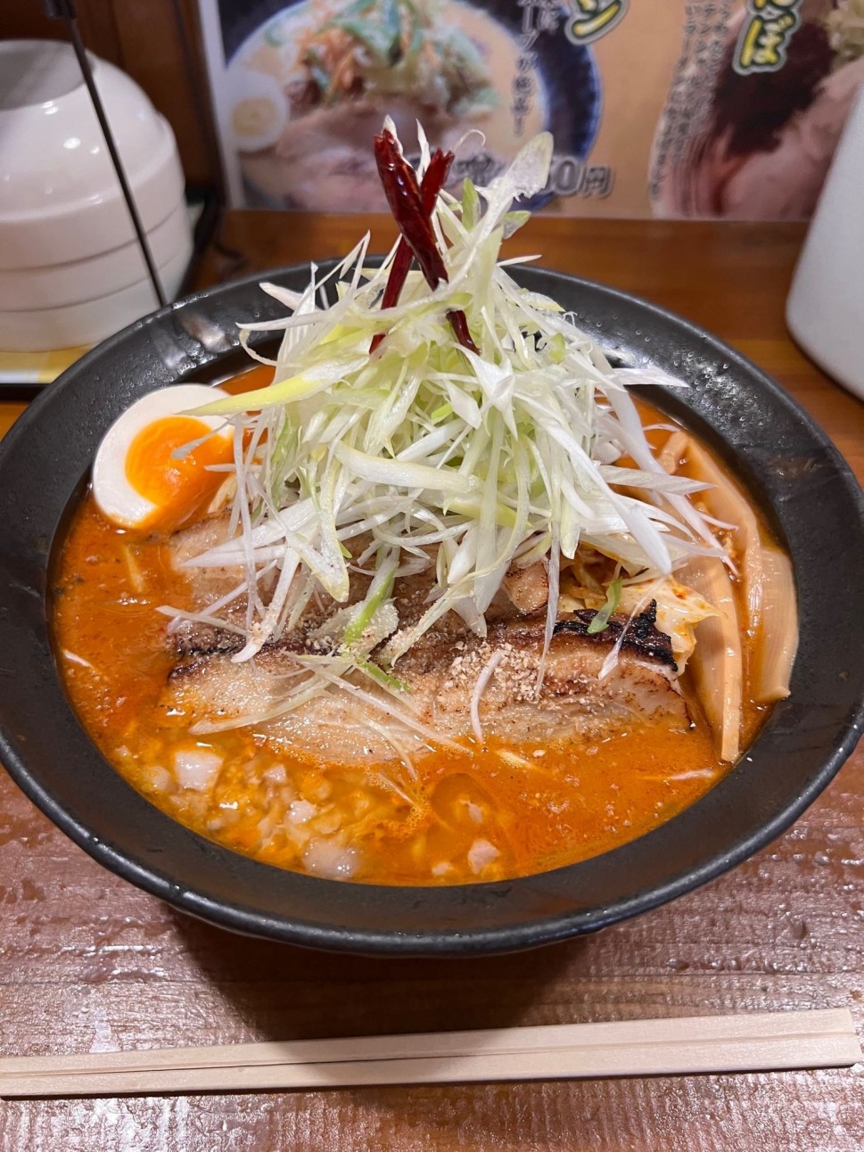 深い味の辛味噌ラーメン。とてもおいしい。もやしが凄く入ってて麺に辿り着くまで割と大変でした
