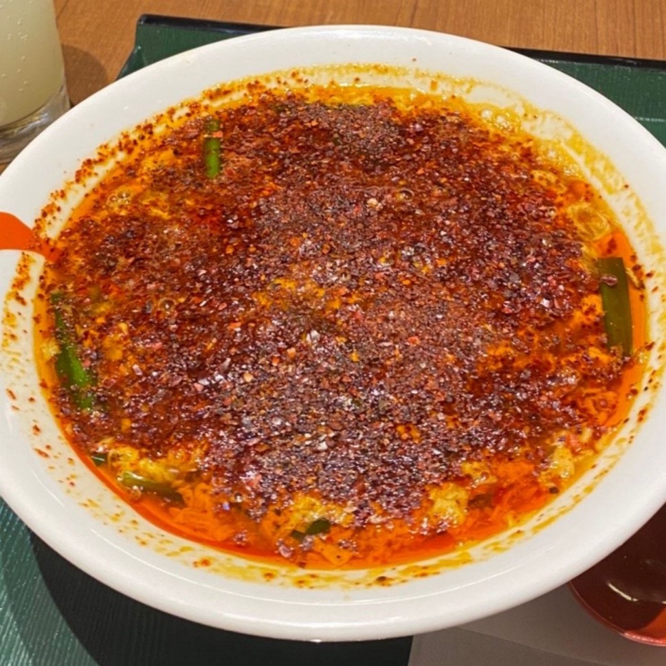 施設に入っているレストランでここまで辛いのはなかなか嬉しいです!味は宮崎辛麺系に山椒がしっかりプラスされて麻辣系のお味。たまごニラが醤油ベーススープに優しく溶け込んで美味さ底上げしてます。麺は平太ややちぢれ麺で、味と油と食感のバランスとても良し!桝元よりふりかけ唐辛子が少なく食べやすかったです。個人的にはもう少し辛ければ言うことなしです。マイ一味持ってまた行きます♪