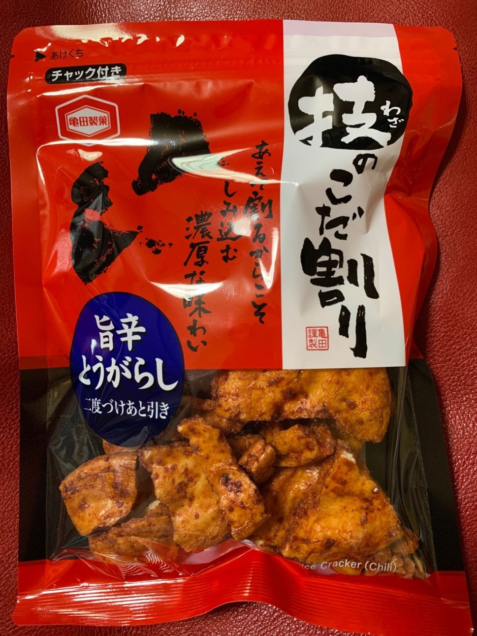唐辛子風味のある、カタイ割れせんべい