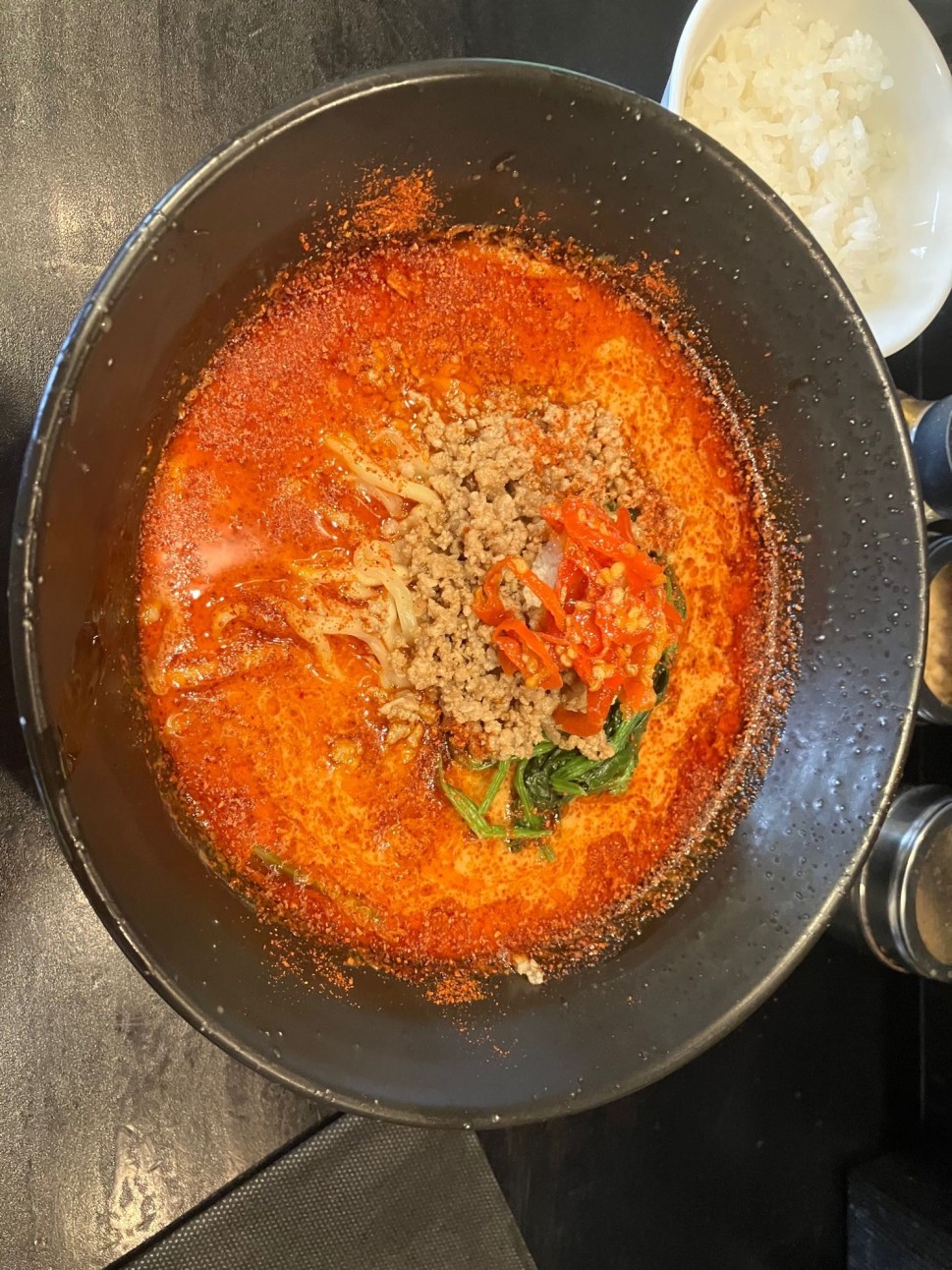 ピリ辛の中でもくりーみーな甘さが際立つ。甘辛い、という印象で美味しい。