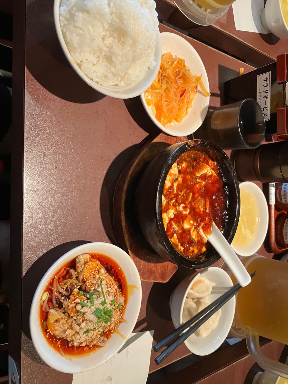 敵は熱さにあり。グツグツ煮えたぎる麻婆豆腐が辛旨です。石鍋なのでいつまでも冷めない。1回取り皿に介して食べるのが正解だと思います。