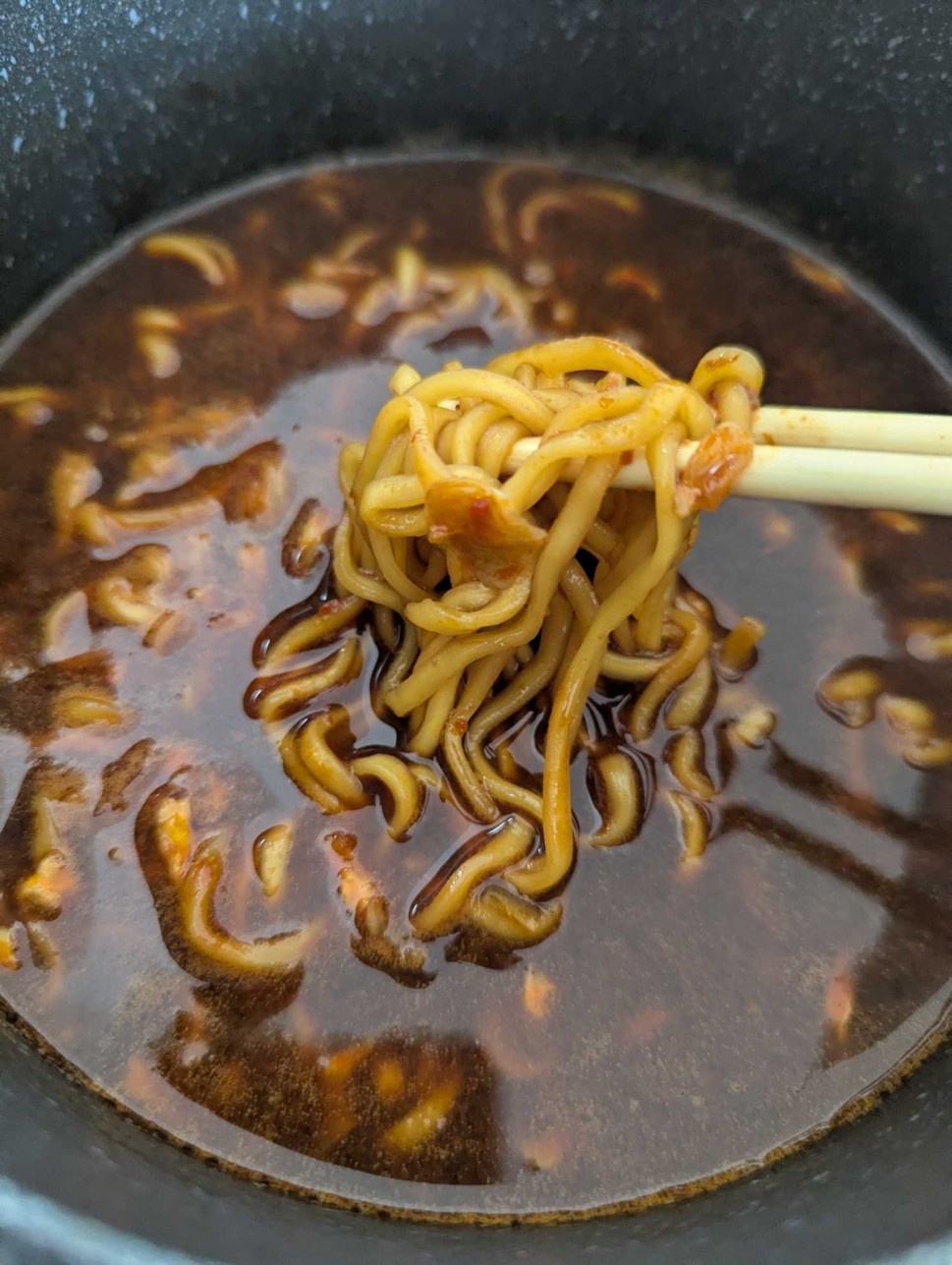 最近は、鍋つゆの素で、麺のみ投入して、ラーメン的に食べるのですが、激辛料理が久しぶりだったためか、つゆを飲み干そうとは思えなかったくらいでした(ラーメンは、基本的に汁まで飲み干してます)。