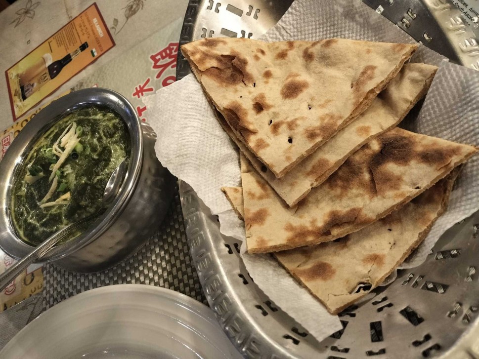 飲み〆パニる🧀ここはどのカレーも濃厚で満足感アリ️🤗でもほうれん草とチャパティで罪悪感ナシ🥬でもボリューミーなのでプラマイゼロ👳