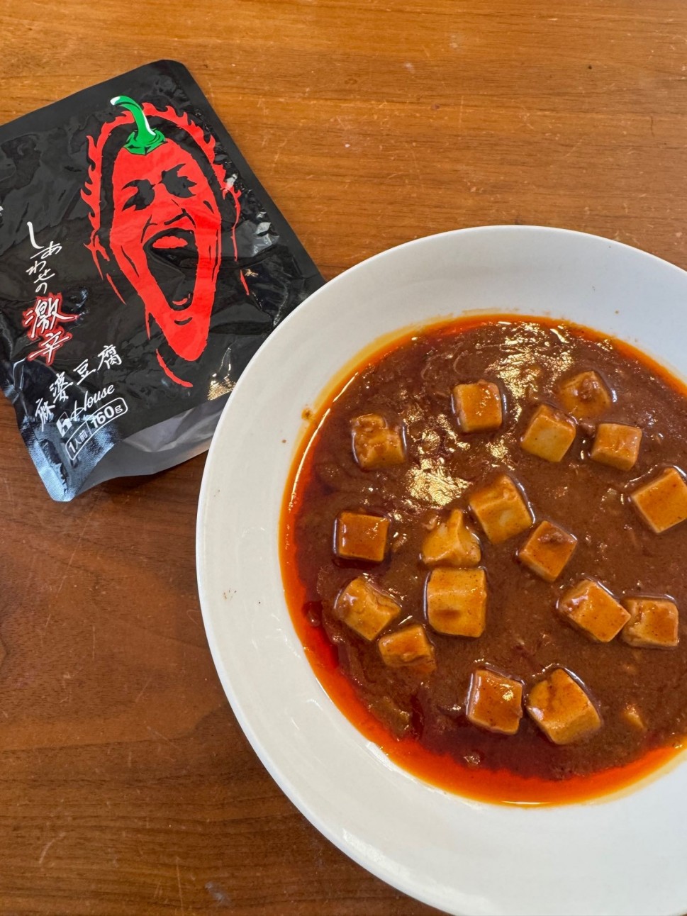 唐辛子の刺激がいい感じです。個人的にはもう少し辛さと痺れがあると嬉しかったけど、美味しい麻婆豆腐でした!何よりパッケージのイラストがいい!