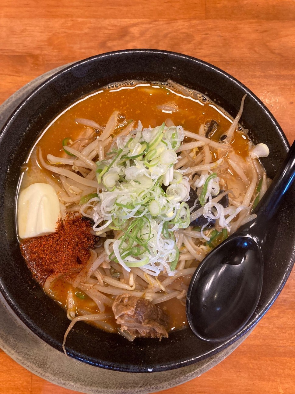 激辛の「鉄火麺」は怖くてチャレンジ出来ないのでいつも「オロチョン辛さ強め、卓上一味ドバっ!」で頂いております。