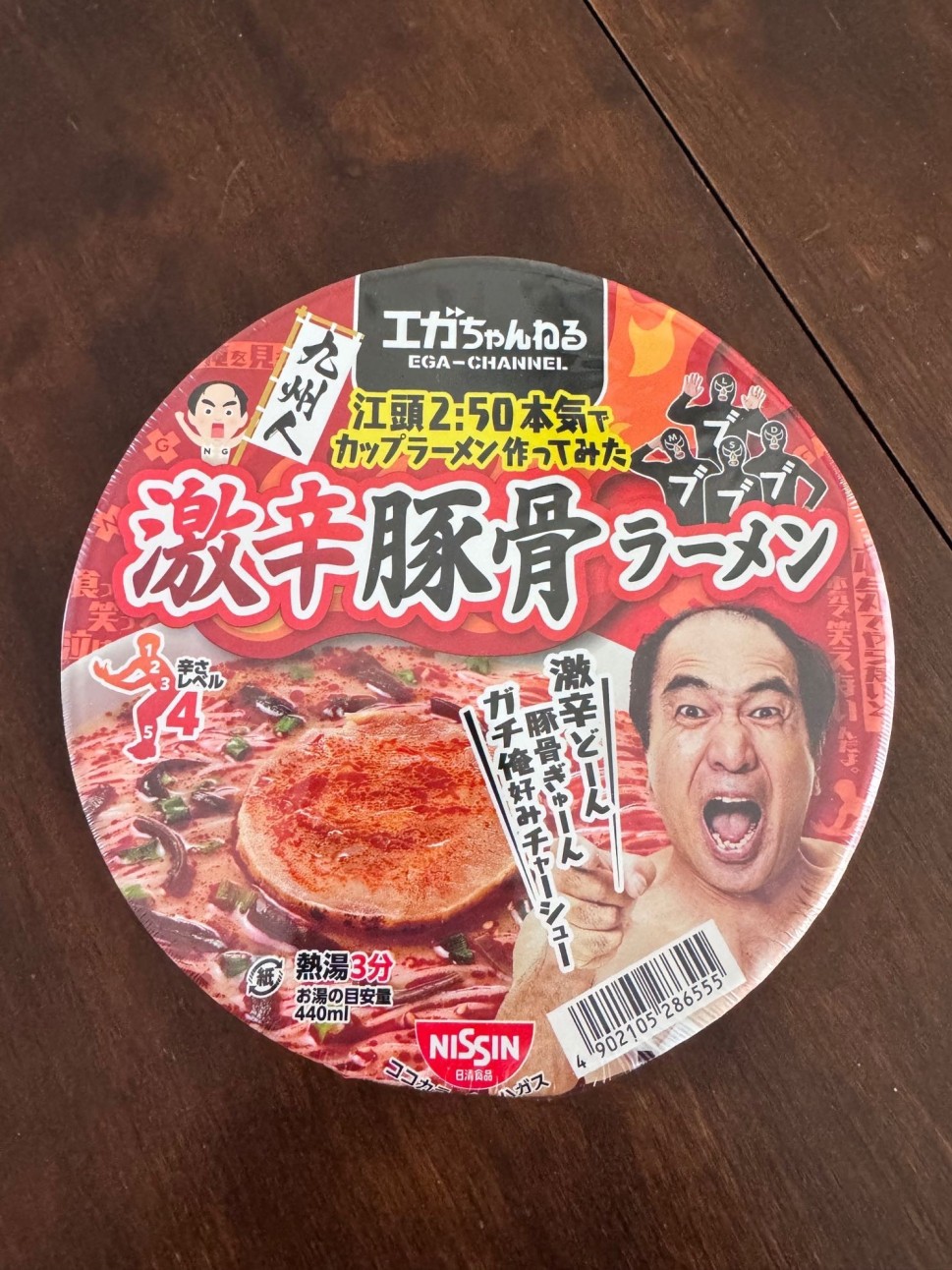 エガちゃんねる監修の激辛豚骨ラーメン4辛をいただきました。ピリッと刺す辛さが最後まで続きましたが、折角なら5辛にするための追いスパイスが同梱されていればなあと思いました。かやくのチャーシューがちゃんとお肉の味がして、豚骨スープも絡む細麺もすごく美味しかったです。