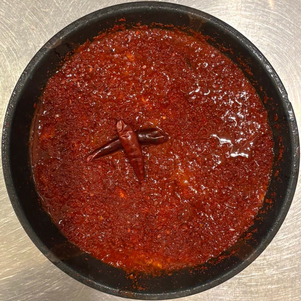 びっしりと敷き詰められた大粒の唐辛子を口いっぱいに頬張れる幸せ辛麺♡一口ごとに痛みが増す感じが激辛好きにはたまらない!しっかり痛辛いので激辛上級者向け!ハードな弾力のこんにゃく麺とにんにくがクセになる一品♡