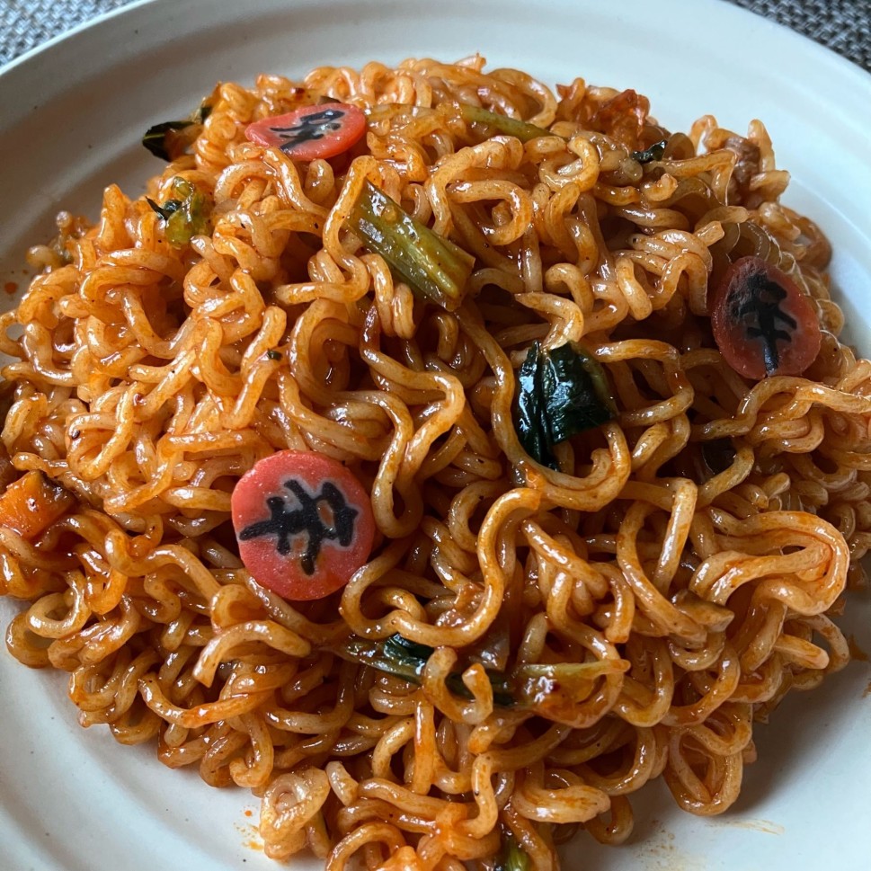 辛ジャッジのために、野菜は別添え!食べ始めたら唇がやたら痛くて、荒れていたことに気付かされました。痛辛いけど、ジャンクな味で美味しい😋やっぱりキャベツがよく合います。辛い口をレモンサワーで流すのが気持ちいい👍