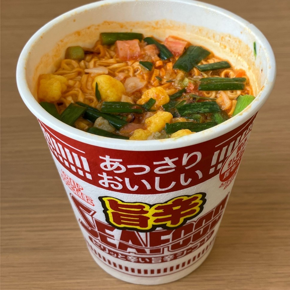 「薄い」わけではなく、ちゃんと「あっさり」おいしい。辛さを求めたら控えめに感じますが、旨辛の範疇で私はこれぐらいも好き!麺が少なめな分スープが楽しめます〜、旨辛シーフードなので海鮮チゲといった感じ。ニラが不意打ちにおいしかったです☺️